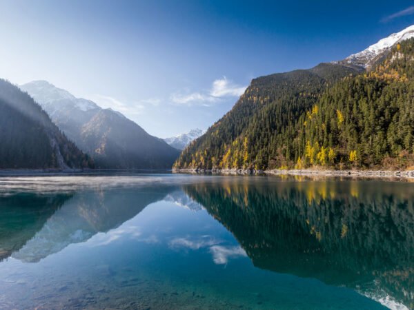 Jiuzhaigou es el parque nacional más reconocido de China. Sus lagos y cascadas de colores, entre los picos nevados de las montañas Min, son de una belleza inigualable.