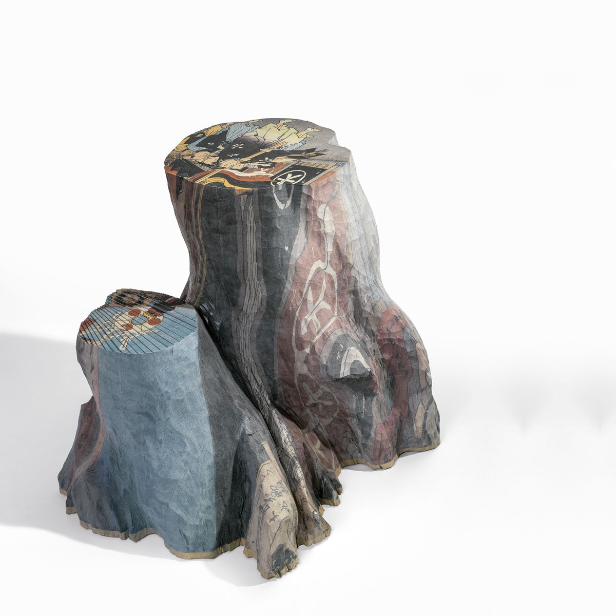 Así llegó a construir los troncos de papel, por los que es más reconocido. “Cuando descubrí que al tallarlos, los volúmenes de papel adquirían una textura como la de la madera, me propuse hacer fragmentos de árboles, pensé que nada sería tan relevante como señalar su origen.