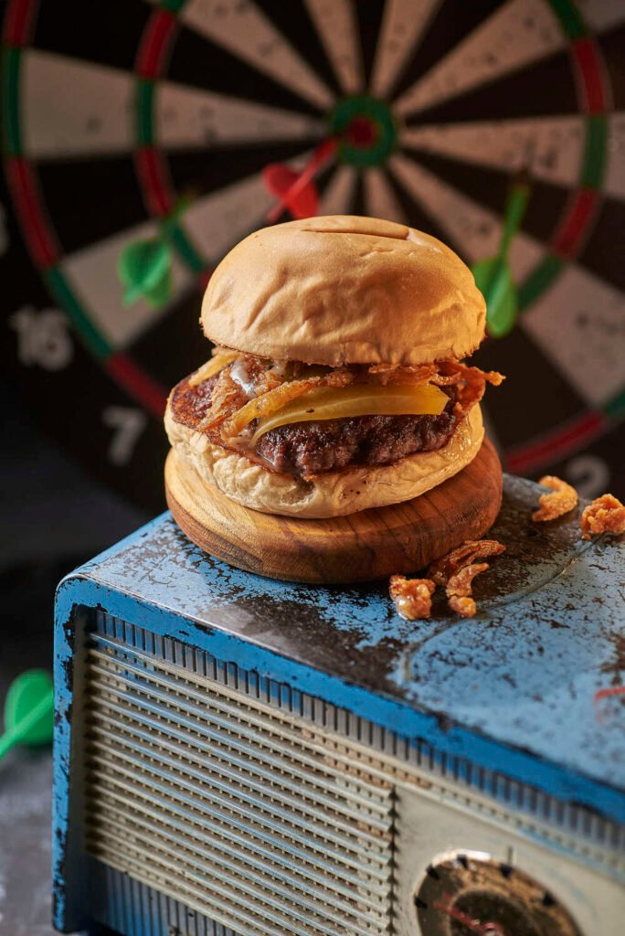 En Sir Frank, un restaurante en Bogotá en el que se elogia la autenticidad de la comida rápida con algunas tradiciones de la costa caribe colombiana, crearon la Sir Burger, su preparación insignia que incluye 180 gramos de carne, con tocineta, queso cheddar, cebolla caramelizada, papas chips, salsa frank, tomate y cebolla.