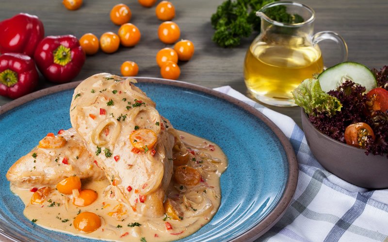 POLLO EN SALSA DE UCHUVAS Y AJÍ DULCE COLOMBIANO