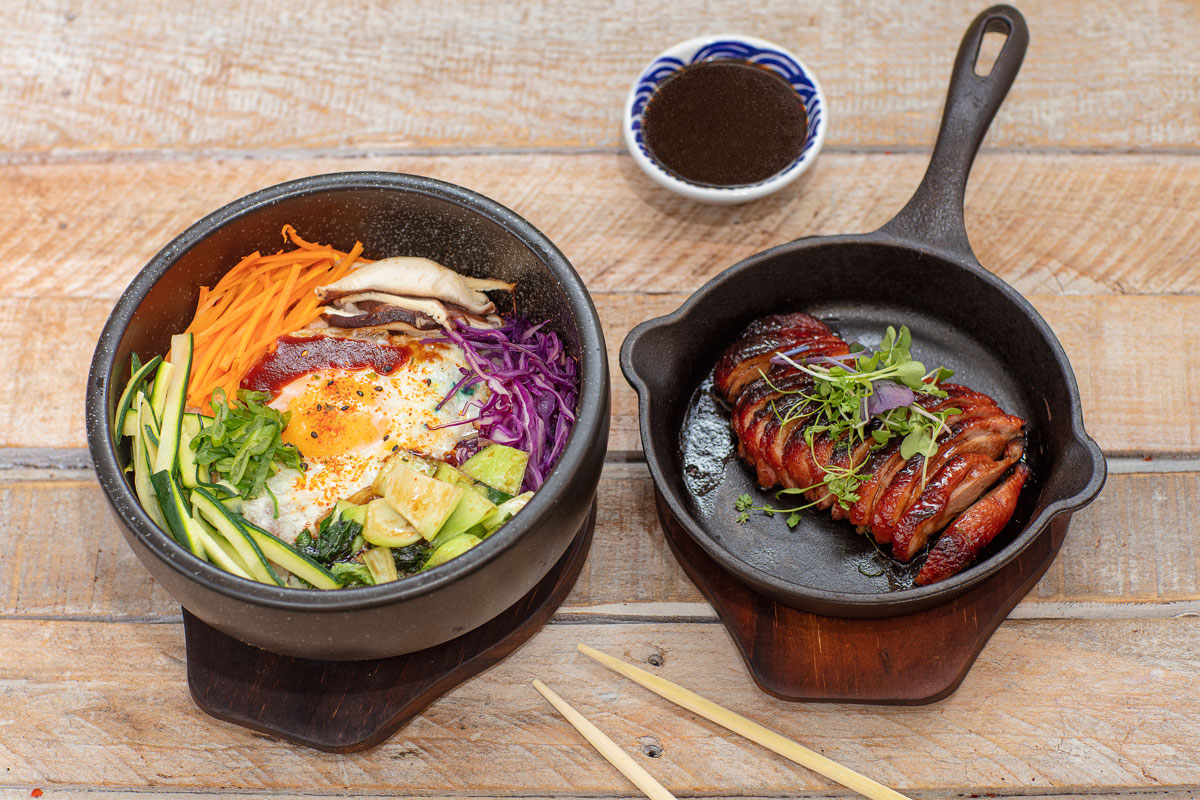 Como en Corea, en Rokko se sirve en un bowl de piedra volcánica hirviendo. A la mesa llega en manos de un mesero que se encarga de explicar el arcoiris de ingredientes que caracteriza a esta perla de la cocina coreana: arroz blanco, un mix de verduras, lomo y un huevo (semicocido) en el centro.