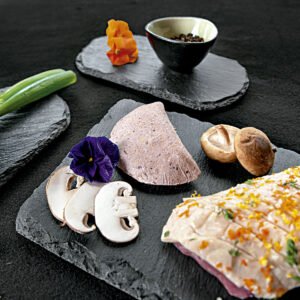 En 2019 entró a estudiar cocina a Cuisine Mode d’Emploi, de Thierry Marx, e hizo sus prácticas en el Palacio del Elíseo. Durante ese año adelantó una investigación histórica sobre las empanadas y se percató de que había variación en los colores de las masas, unas más oscuras y otras más claras; eso la inquietó y la hizo preguntarse cómo darle color a la masa de forma natural. Entonces se topó con el calamar para el negro, la remolacha para el morado, el puré de espinaca –entre otras posibilidades– para el verde. Empezó a establecer su red de contactos de productores, porque decidió no importar nada y a trabajar en los rellenos, también creación suya.