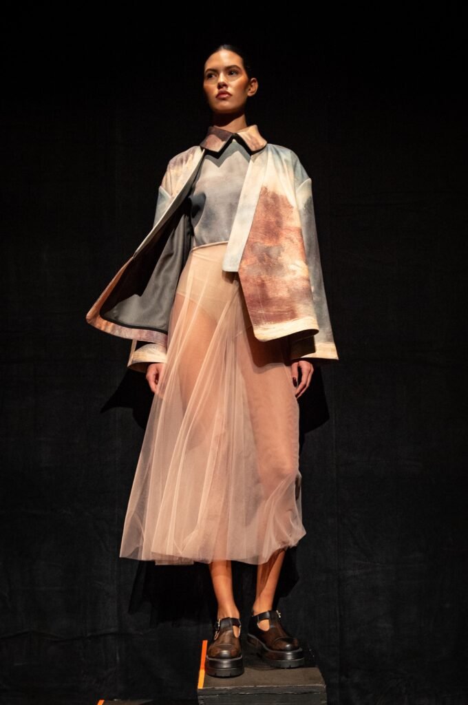 Fue así como la noche inaugural del BFW fue un viaje a través del tiempo y el espacio de la moda y la danza, donde cada prenda y movimiento contaron una historia. El espectáculo se dividió en dos actos principales, comenzando con un homenaje vibrante y lúdico a la obra ‘Animal Family’. Esta pieza, desarrollada en colaboración con artistas como Rodrigo Echeverri y el colectivo de ilustración Manos Sucias, se caracterizó por un vestuario que evocó alegría y contundencia, reflejando personajes entrañables y un tanto macabros, inspirados en la atmósfera oscura de ‘Animal Farm’ de George Orwell.