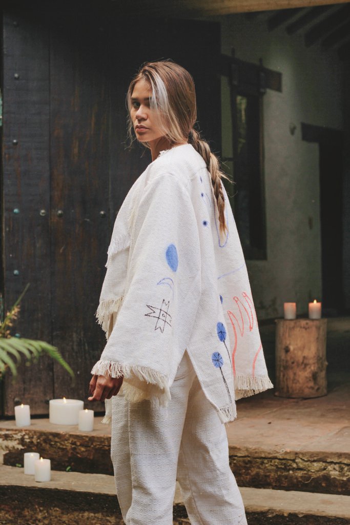 “Cada prenda busca hablar y busca decir que estamos aquí todavía. Esto fue algo con lo que me encontré frecuentemente durante mi juventud, pues la gente me solía preguntar: “¿En serio existen los muiscas?”. “¿Ustedes van a la universidad?”. “¿Y desde cuándo no viven en chozas?”. Es como si no concibieran a las comunidades indígenas dentro de la modernidad y como parte del mundo contemporáneo. De ahí nació, entonces, mi propuesta de unificar el pensamiento contemporáneo con el nuestro tradicional y crear algo que realmente conecte estos dos pensamientos con una estética propia, muy pulida”, manifiesta.