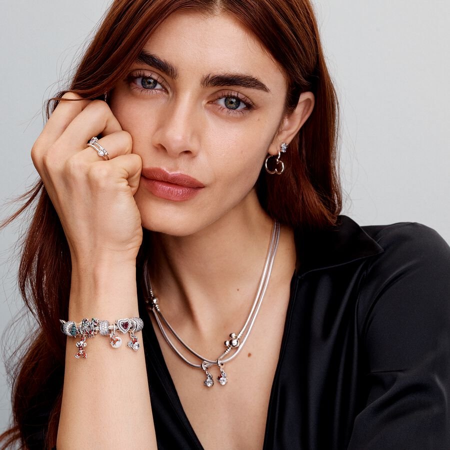 Con cada pieza, Pandora y Disney logran un equilibrio perfecto entre diseño, nostalgia y sofisticación. La colección incluye desde aretes hasta collares y brazaletes de edición especial que capturan la esencia de la temporada navideña. Entre las joyas más destacadas se encuentra el Brazalete Pandora Moments Cadena de Serpiente con Cierre Mickey Mouse de Disney, una opción ideal para regalar esta Navidad. Este brazalete puede combinarse con el Charm Colgante Adorno Chip y Dale de Disney, elaborado en plata esterlina con detalles esmaltados que resaltan la ternura de estos icónicos personajes.