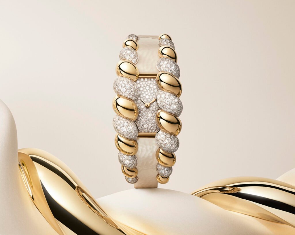 Esta creación, reloj y joya a la vez, tiende un puente entre la relojería y la joyería, al combinar elementos ligados a la historia estilística de la maison.