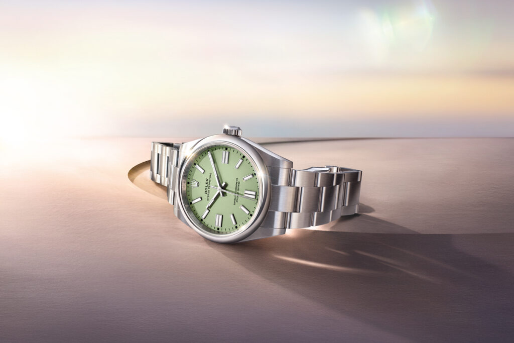 Una sensación por cada estilo, un estilo para cada muñeca. El Oyster Perpetual trae una variedad de tres esferas, con colores sobrios que invitan a la tranquilidad: el diseño 28, un lavanda suave; el 36, un beige arena, y el 41, un verde pistacho refrescante. Sus curvas estilizadas lo dotan de un aspecto sencillo, que se ajusta a cualquier escenario. En particular, el modelo 41 alarga las proporciones de su caja y añade un sistema de cierre, el cual ajusta la muñeca con total seguridad.