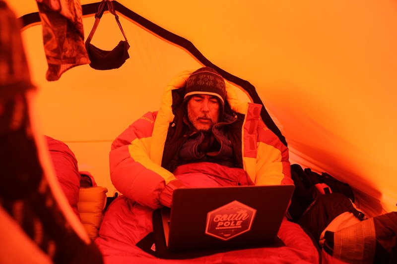 La bitácora del día y las fotos de la expedición se transmitían vía satelital desde la carpa. Era el único contacto con la civilización