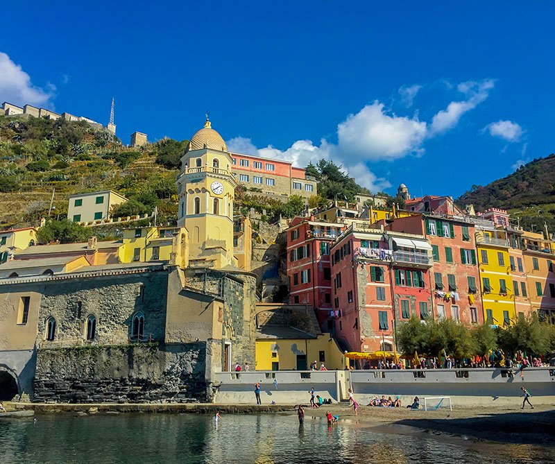 Cinque Terre, conformado por cinco pueblos bañados por el mar de Liguria, fue declarado por la Unesco como Patrimonio de la Humanidad en 1997. Cinco pueblos donde todavía se escuchan las leyendas de piratas y corsarios, un lugar donde al caer la tarde, se puede disfrutar un helado de albahaca en alguna de sus gelaterias, al tiempo que contempla los colores cálidos del sol poniente mientras ilumina las fachadas de las viviendas medievales construidas en los peñascos.