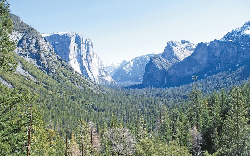Después de la parada de rigor se apunta hacia el sur y el este a través de pueblos y ciudades de nombres tan hispanos como San Luis Obispo, Sacramento, Manteca, Modesto, Madera, Fresno. Y después de casi mil kilómetros por entre sembradíos de manzanos, viñedos, ciruelos, naranjos y duraznos que esperan la primavera para florecer, está el Parque Nacional de Yosemite.
