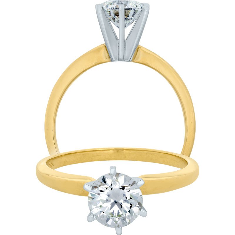 Dorado clásico: Anillo solitario en oro amarillo de 18 kilates con un diamante de 1.01 quilates.
