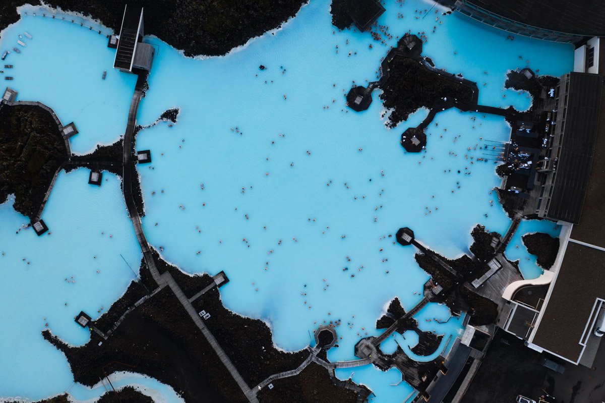 Aterrizar en Keflavík, aeropuerto que sirve a la capital islandesa desde la península de Reykjanes, es mágico. Se ven campos de lava, cráteres, cavernas y termales, que dan la sensación de llegar a otro planeta o a la Luna. Muy cerca de allí se ubica la laguna Azul, uno de los balnearios geotermales más conocidos del país, que ofrece planes por horas, hoteles y restaurantes.