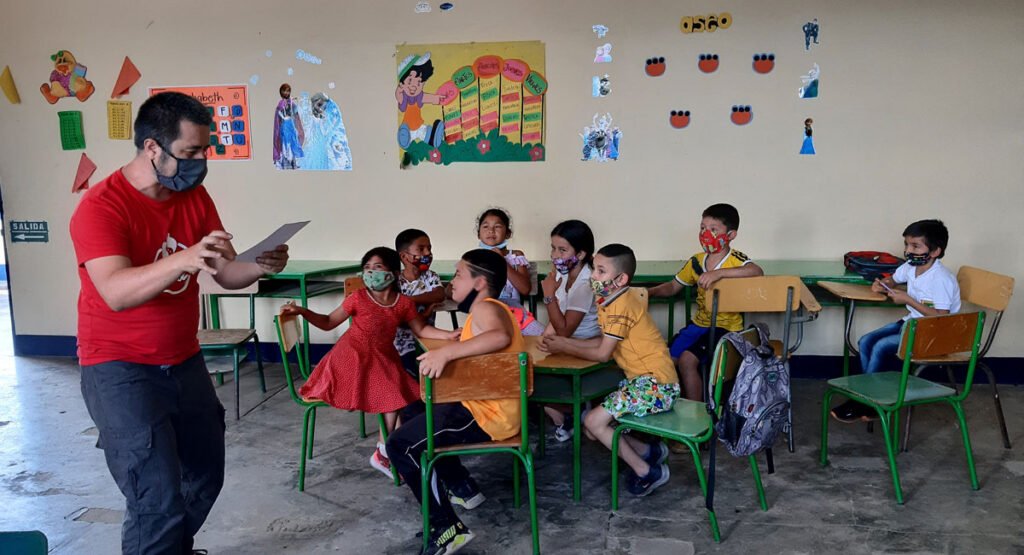 Por su parte, Jaime no solo dicta talleres para leer y escribir sino que inspira a otros a explorar su creatividad. “Hay niños que al final de la vivencia dicen ‘no sabía que era capaz de crear mi propio cuento’. Eso es lo más importante del viaje para nosotros: saber que estamos aportando de alguna manera haciendo lo que nos gusta hacer”, agrega Diana.