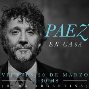 A través de sus redes, el cantante y compositor argentino Fito Páez anunció su concierto vía streaming. El próximo viernes 20 de marzo, desde las 7:30 p.m., hora Colombia, Páez estará interpretando su grandes éxitos, además de compartir algunos temas de su último trabajo discográfico titulado La conquista del espacio. Aún no se conoce la plataforma por donde se realizará la presentación, pero se espera más información en @fitopaezmusica.