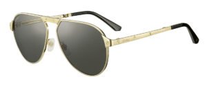 Creadas en homenaje al aviador Santos-Dumont, estas gafas de sol de Cartier toman prestados los famosos tornillos del reloj Santos y las unifican al metal con acabado platino dorado y su emblemática forma piloto.