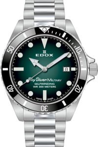 Para ocasiones casuales, un pulso en lona y para eventos formales la opción en acero inoxidable; este reloj de la marca suiza Edox, además de ofrecer dos tipos de pulso, es resistente al agua hasta 300 metros y tiene cristal de zafiro.