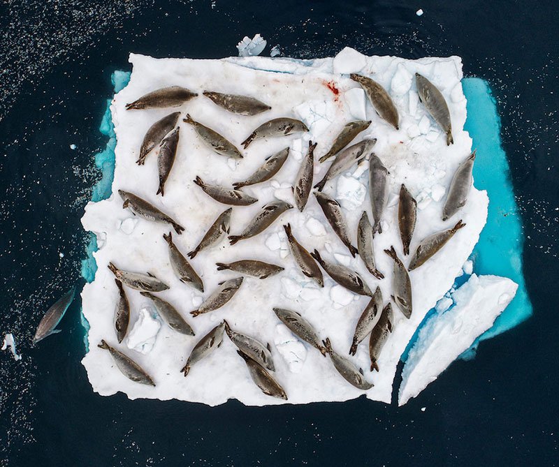 – “Las focas se están quedando sin glaciares para descansar”, es el pie de foto con el que Cristóbal Serrano acompañó esta foto en la que las focas tienen que acomodarse en un pequeño témpano de hielo.