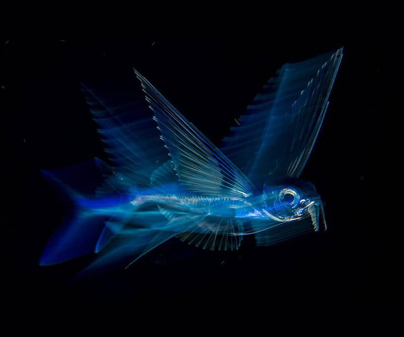 – Michael Patrick O’Neill capturó a este pez volador bajo el agua. La foto crea una sensación de movimiento lo que muestra al pez desplegando sus ‘alas’ antes de salir a la superficie.
